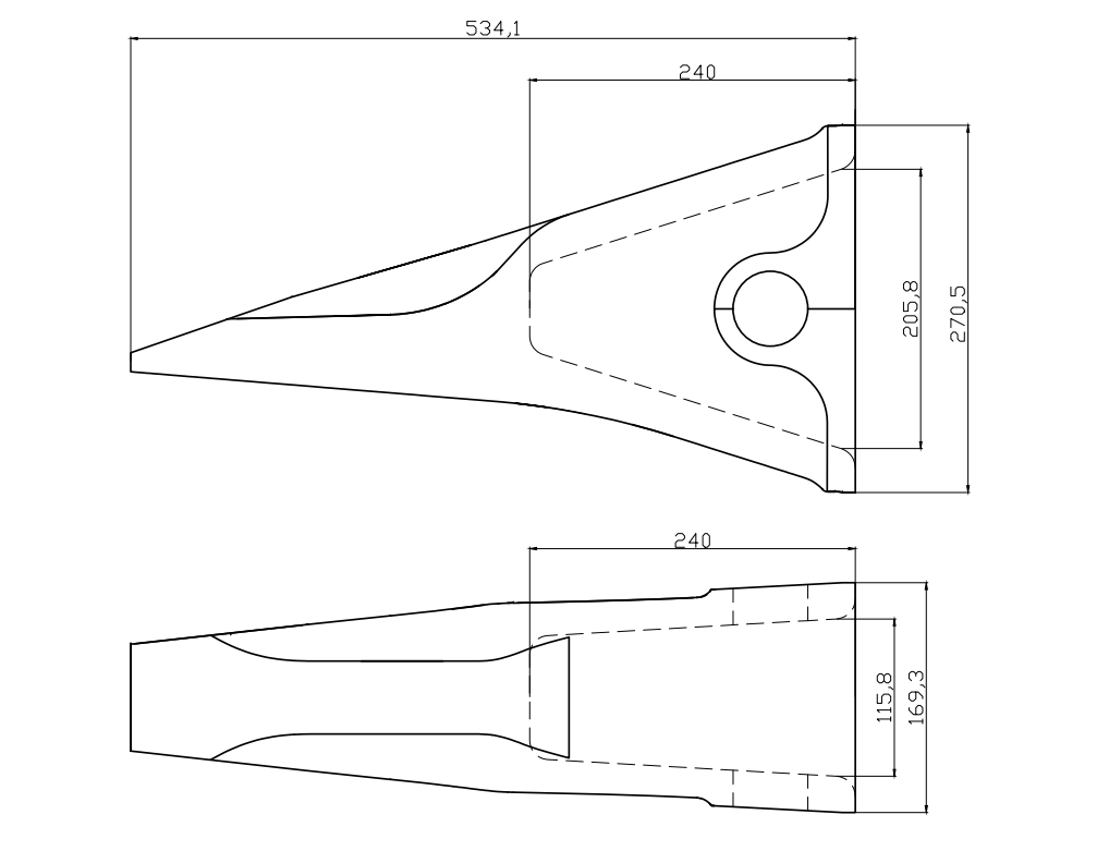 Профиль зуба Зубья ковша Комацу в частности, включает следующие виды: Эмаль с острым конусом: эта форма зубьев обладает чрезмер...